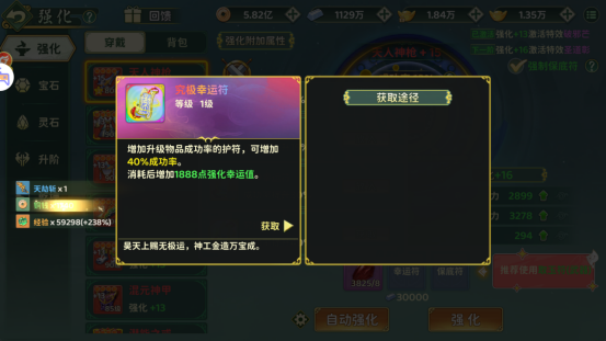 百分之四十等级强化幸运符一定要好好保留,不到100级的装备别用。