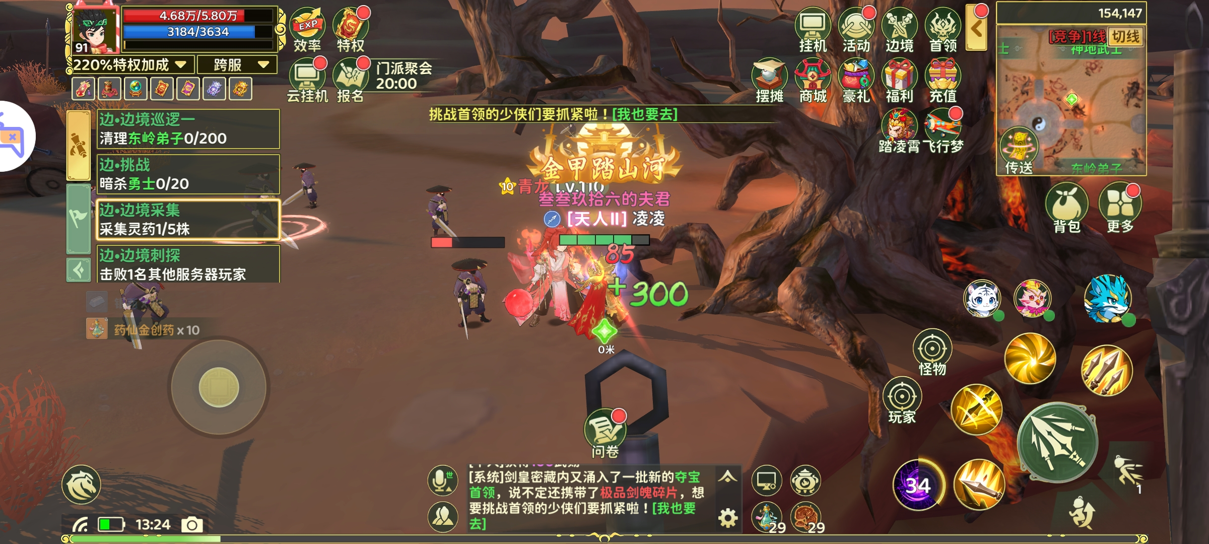 刷东岭弟子200个看似很多,其实只要等级上去了,一会儿就能清完,刷完200个还有400个的任务,找个空闲的时间挂着刷就行。