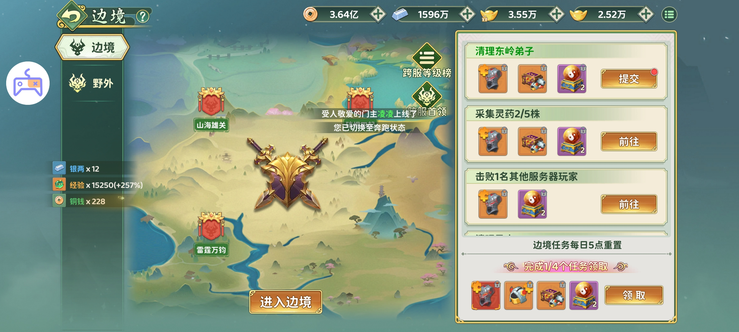 先把基础规则说明白,这是咱老玩家办事的规矩。跨服边境直接点边境图标更省事,右上角边境按钮进入边境游戏就会自动跑图,进入边境。