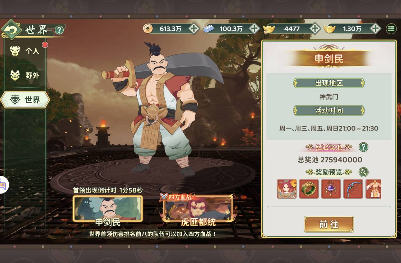 9点以后直接去打【世界首领】或者【正邪战场】,可组队可单人,【世界首领】伤害前八的队伍可以加入四方血战!等级低的友友想打的就去组队。