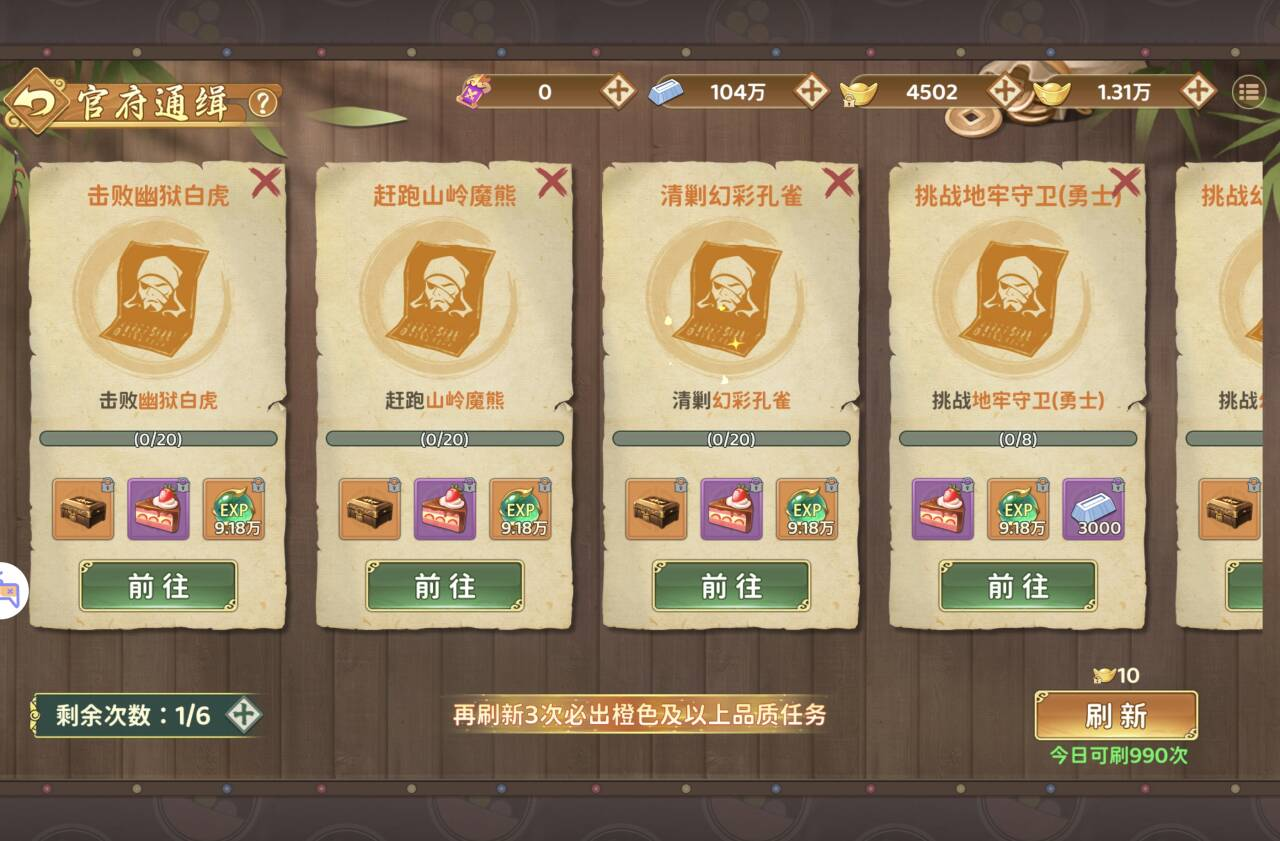任务都可刷新,可根据自身战力刷最优的选项,以获取更多经验、活动奖励。