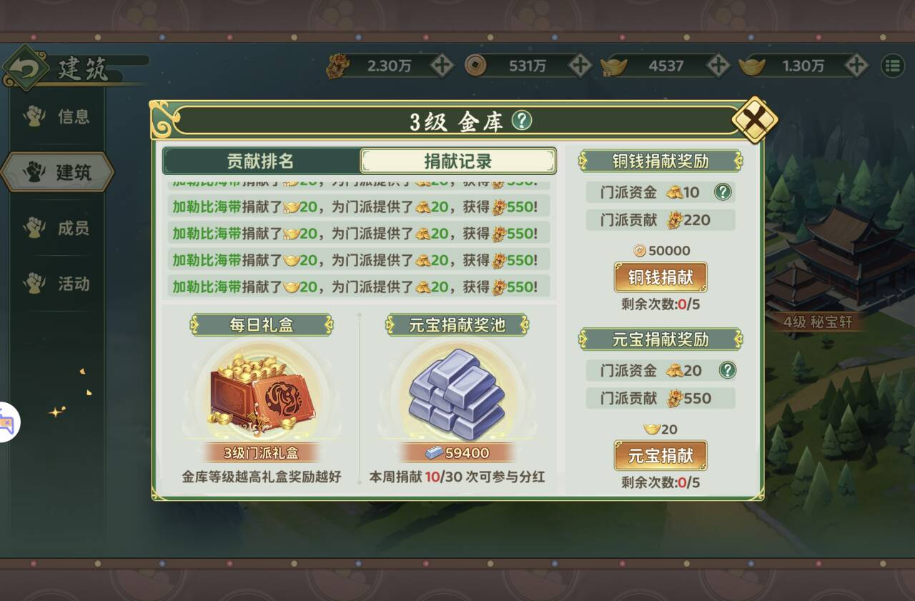 同时把1折门贡打造,金库铜钱捐献拉满。