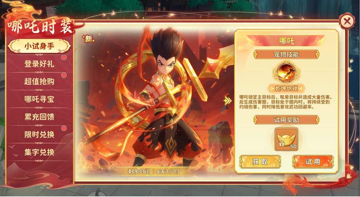 活动期间可免费试用神宠技能与特效,体验专属战斗加成,试用完成后还能领取绑定元宝奖励!既能试玩新宠,又有实惠福利,怎能错过?