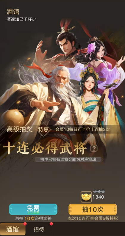 1. 对于武将统帅B、A的,每天在酒馆抽取就可以获得。