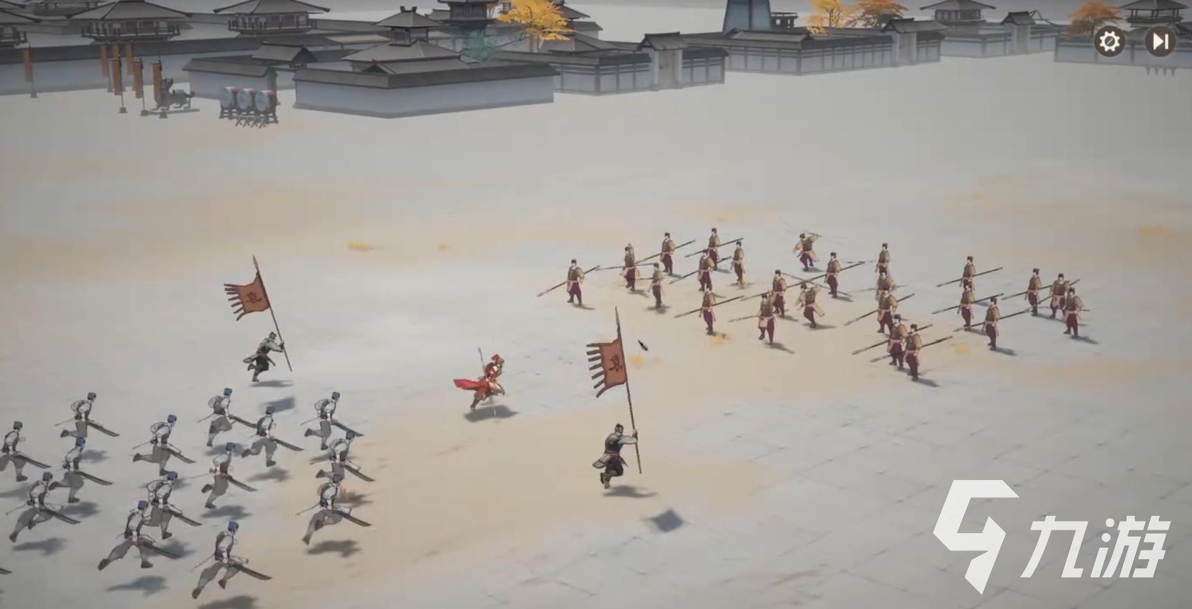 为了让游戏能够拥有更高的策略性,本作摒弃了传统策略游戏的即时战斗模式,转而采用战棋玩法,将战斗场景化为棋盘,武将化作棋子。玩家可以在棋盘上进行排兵布阵,通过高明的布局来掌控战局。其实棋盘上的地形因素也是极为关键的,那些山川、河流等自然障碍会对兵种的移动和攻击产生影响。