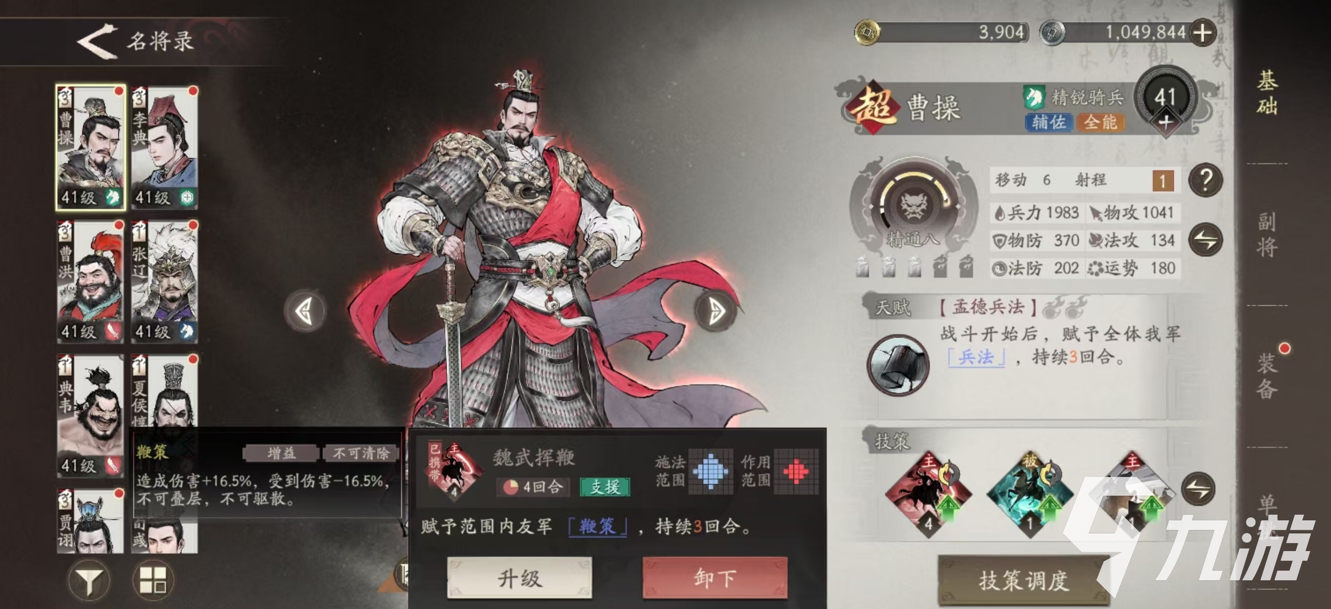 作为一名骑兵武将,徐晃的阵容搭配非常简单,就是和其他魏国骑兵一起组成全骑阵容,毕竟现在游戏中骑兵占据着冲排行榜大多数的位置,副本地图中大多数都是平地,山林和森地比较少,所以骑兵可以很好地打先手以及打合击。阵容选择方面,除了徐晃之外,还可以搭配曹操、曹仁、夏侯敦、张辽等,这样一套非常强势的魏国骑兵就组建完成了。这套阵容中曹操是当仁不让的辅助核心,利用自身的各个技能给队伍中的其他武将带来攻击、减伤方面的各种增益加成,虽然曹操本身输出不高,但可以让其他武将的输出大幅度提升。