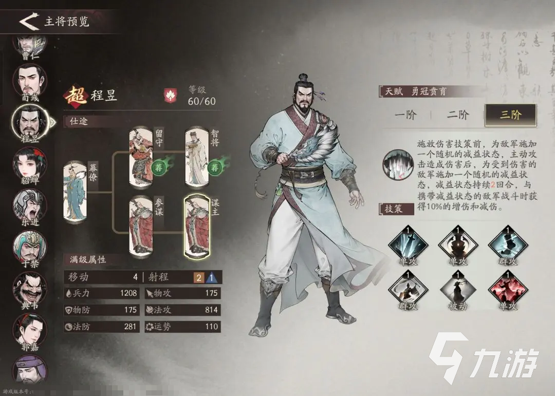 三国望神州程昱是个超品武将,同时他也是曹操的谋主,在设定当中,定位是减益型的法师,具有各种强力负面不丰富技能,不论是单体还是对群,相对来说都是比较均衡的,鉴于目前仍有不少小伙伴对该角色的技能情况不了解,不知道他的强度怎么样,接下来就给大家进行系统的解析。