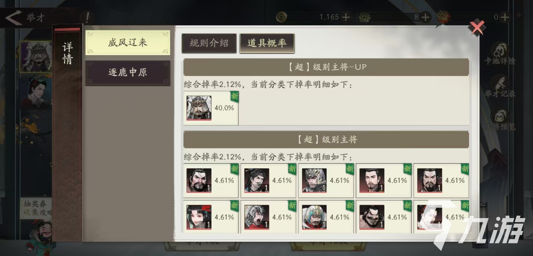 而新手池开放的抽卡次数一共只有40次,这就意味着整个卡池除了有相当数量的杰武将出现之外,最少能够获得一张超级别主将。新手池在首次获取到超品质主将之后就会转化为限期精选池,精选池中会定期出现某几名超品质主将,然后提升获取的概率,例如在新手池曹操起兵中,定向出现的就是许褚、程昱和典韦。玩家可以使用同样的抽卡道具,继续在池子中抽取心仪的主将。无论是精选池还是后续的常驻池,以及限定池,保底次数都变为60抽,也就是最多进行60次抽取,必定会获得一名超级别的主将。概率提升的主将掉率,则由原来的40%上调至50%,更容易获得自己心仪的目标。