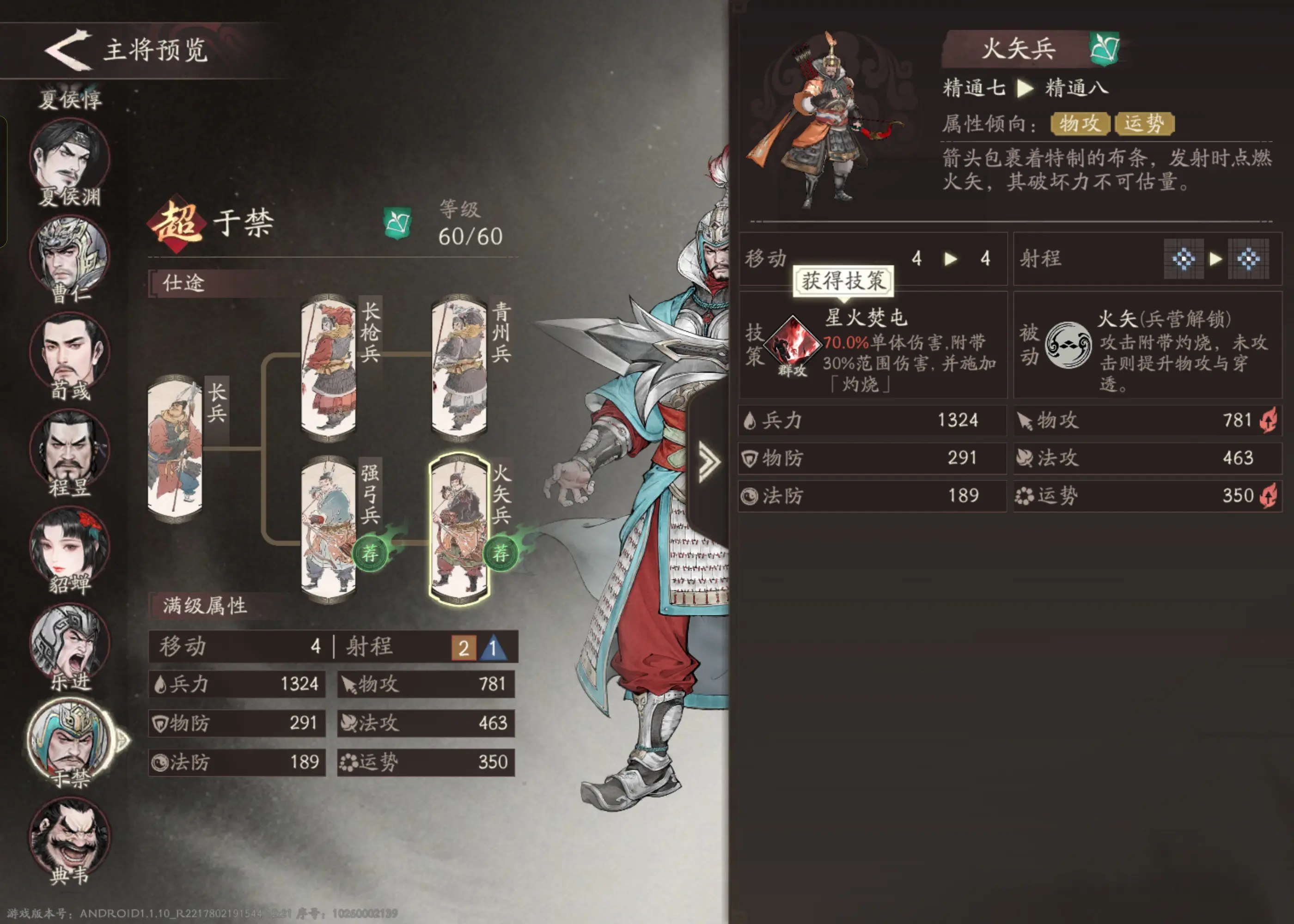 于禁的兵种选择,是其战术价值实现的关键一步。推荐选择“火矢兵”路线,这不仅仅是为了攻击距离,更是为了让他从一个单纯的物理射手,进化为一个物法双修的混合伤害炮台。