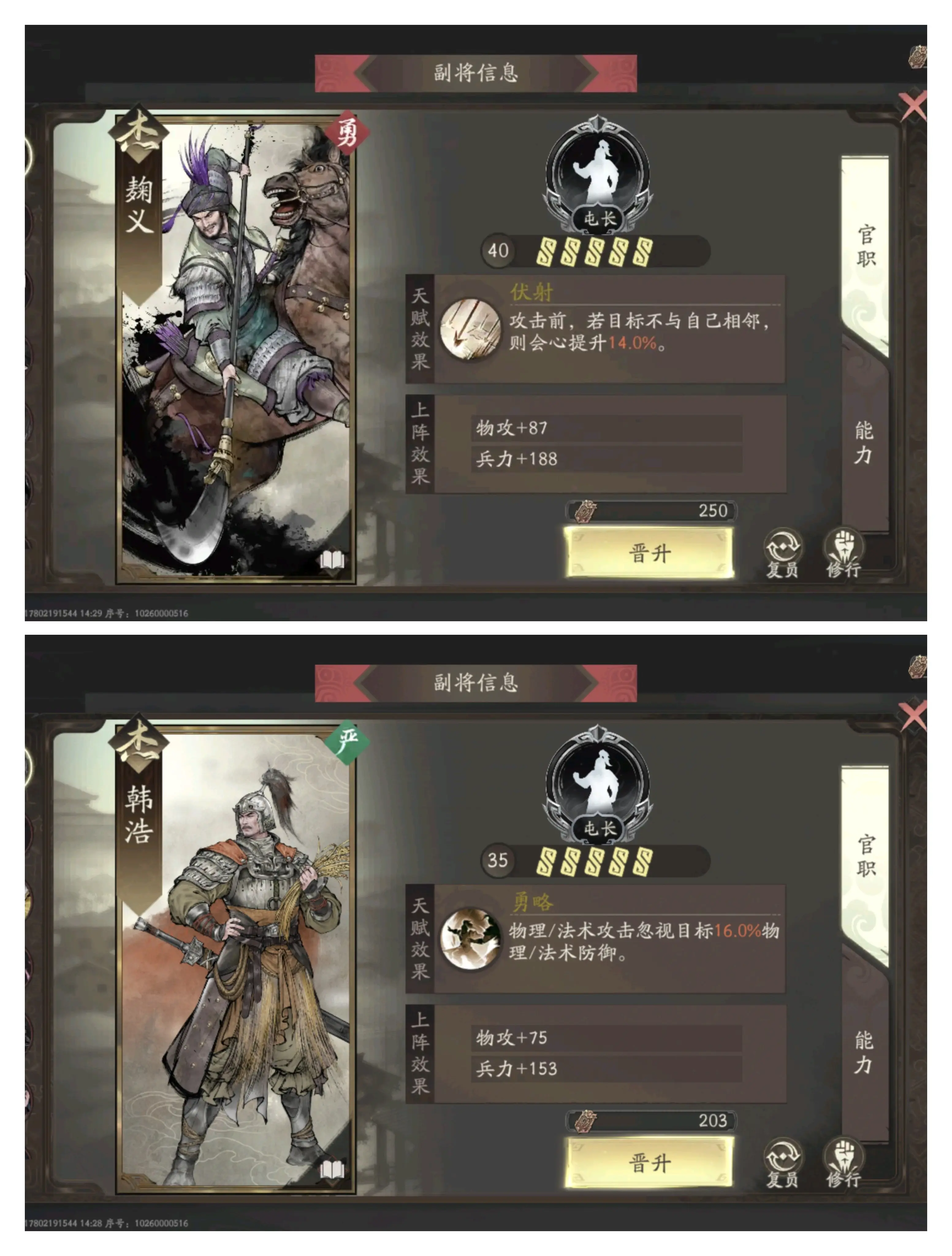 初期:韩浩或麹义是理想的过渡选择。韩浩的破甲效果能间接提升伤害,而麹义则能直接放大暴击收益。