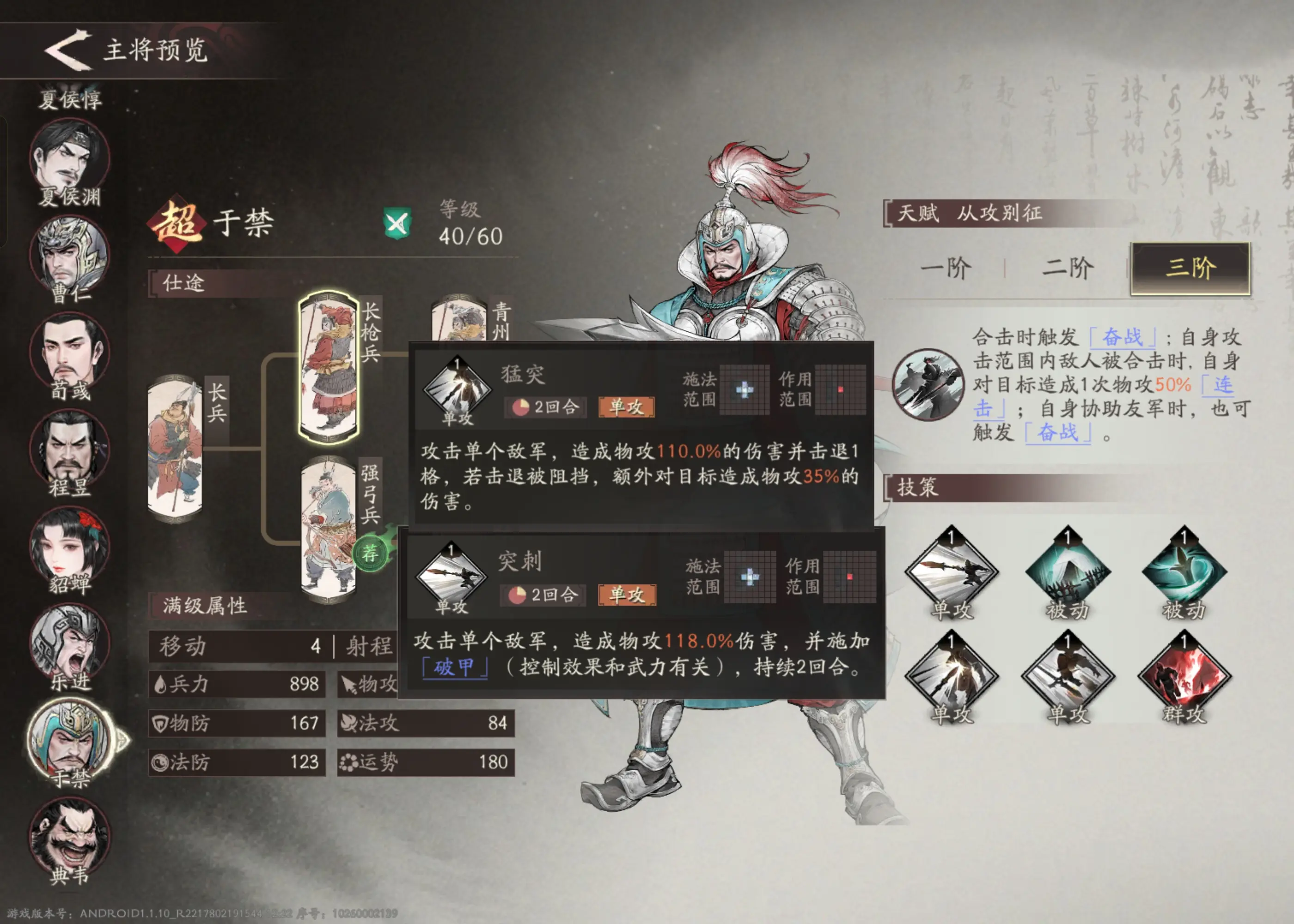 合击,作为游戏中最核心的战斗机制之一,是玩家在战术层面实现伤害放大的关键。而在众多将领中,于禁正是将这一机制从战术选项提升为战略核心的代表人物。他是一位典型的成长型将领,其价值会随着游戏进程的深入和玩家对体系理解的加深而发生质变。