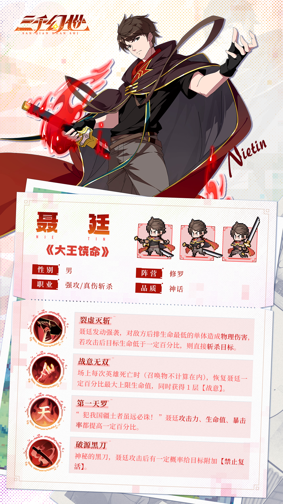 手机游戏> 三千幻世> 游戏新闻> 英雄档案-聂廷 (内附礼包码)