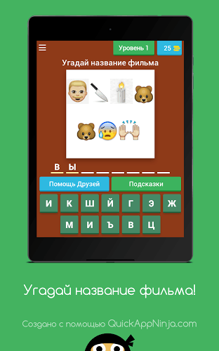 看笑容和小文的线索和猜测影片的片名。花时间与好处!使用提示,朋友或硬币的帮助下,游戏里面的线索。祝你好运!Исправлены ошибки отображения на некоторых моделях.