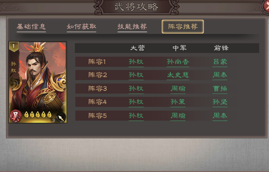 手机游戏> 三国乱世霸王> 游戏攻略> 综合篇> 《三国乱世霸王》孙权武将攻略