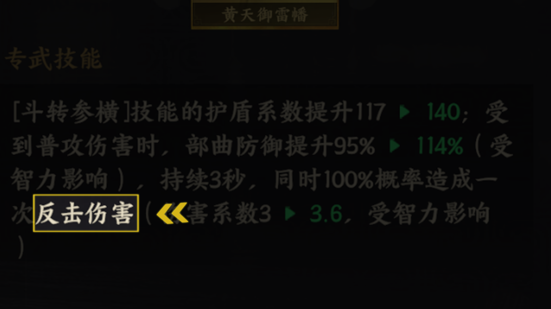 特性收益:张燕在坚毅状态下提升主动技能伤害