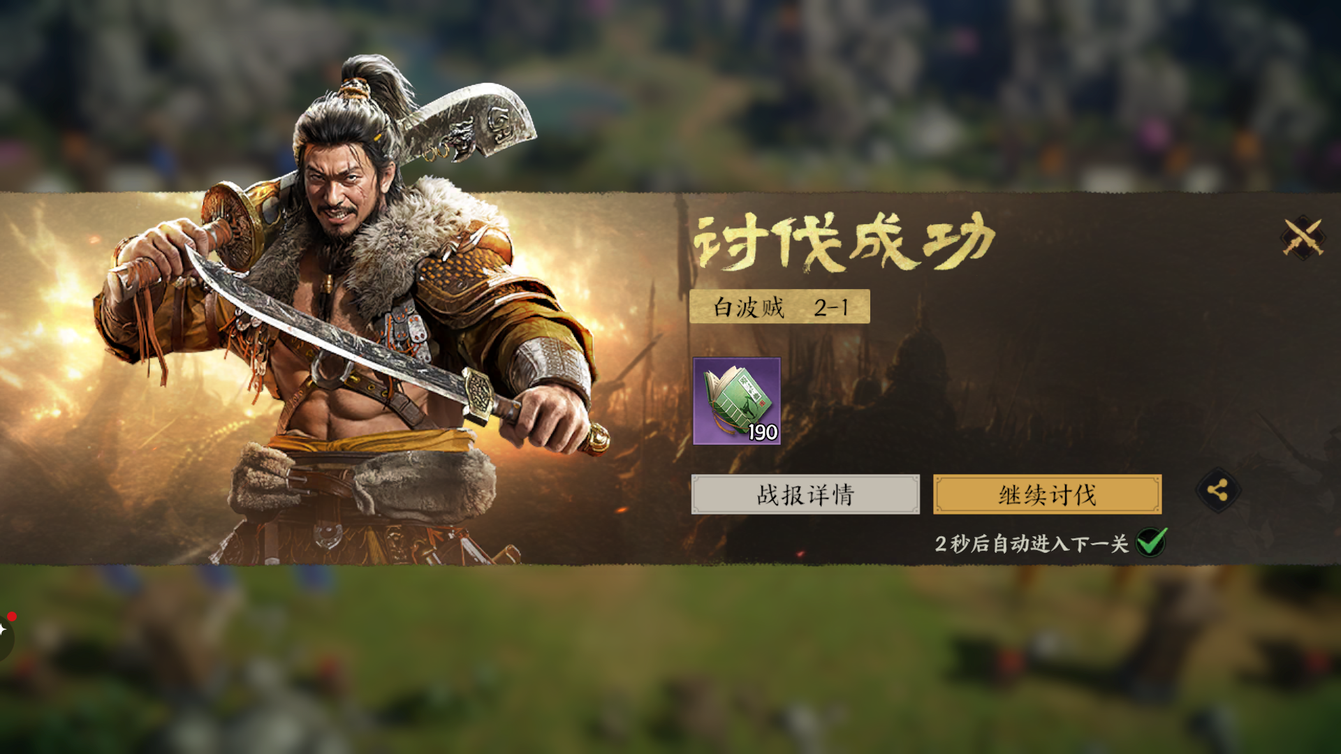 讨伐玩法自动下一关哦,无需手动点击进入。主公只需做好战前排兵布阵,剩下的就交给跳过战斗吧,主公大可快速点击通关获取更多奖励,战报详情可以在战斗记录中回放查看~