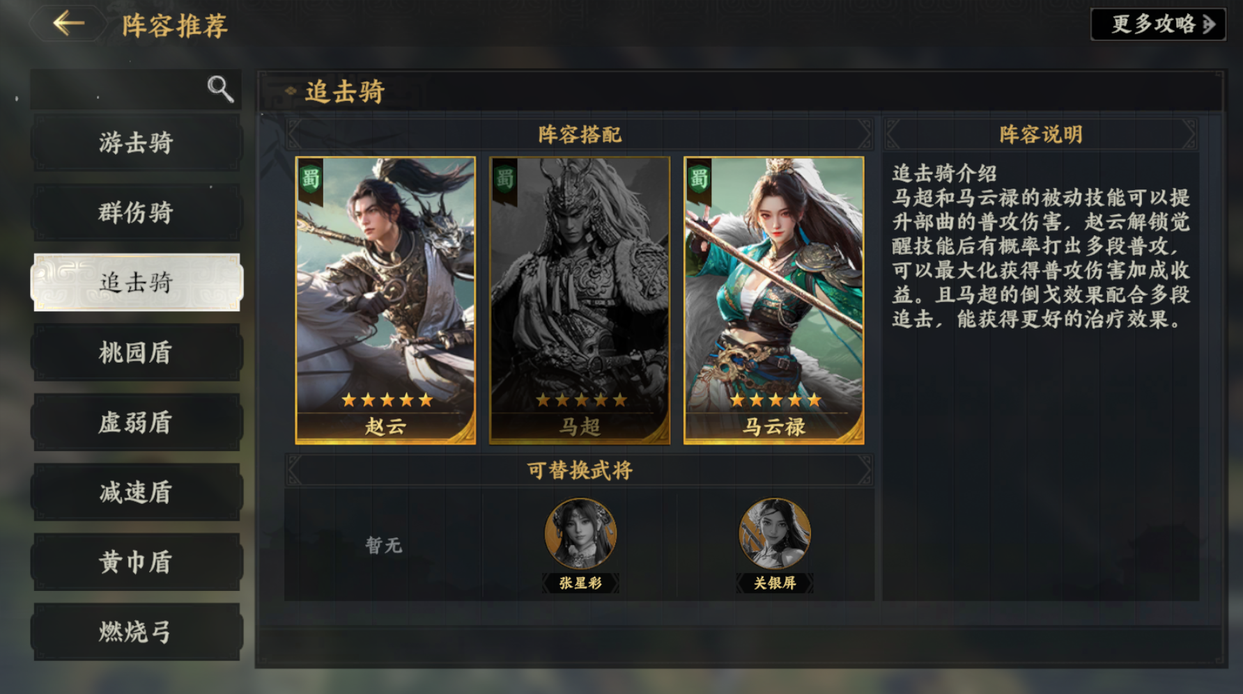 为主公提供多种不同组合的阵容搭配,从而根据敌方武将、兵种、战场环境灵活应对。并且还有可使用的替换武将,简单明了,阵容摸索难度大大降低,平民不再为组建不了强力阵容而发愁啦!