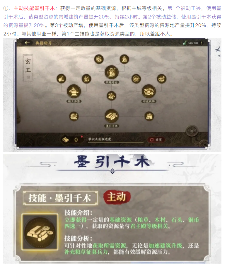 本期带来S3典籍研习玩法中的[玄工]职业内容,通过积累历练获取学识点、解锁专属技能,重置技能需要冷却48小时,S3赛季中只有一次换典籍的机会。该职业每天可根据主城等级获得4选1自选资源,可对联盟器械进行加强,强化其输出能力,对烽火台进行加固,提升其耐久能力,自己制作陷坑,可以放在地上对敌方队伍进行控制,损失其兵力。