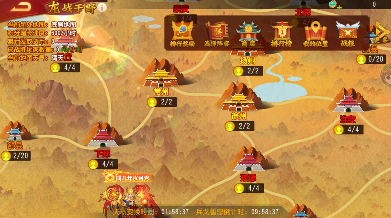 2)每天10:00前会对该地图中潜龙之力排名前列的主公进行登云,不同等级的地图可登云人数不同。