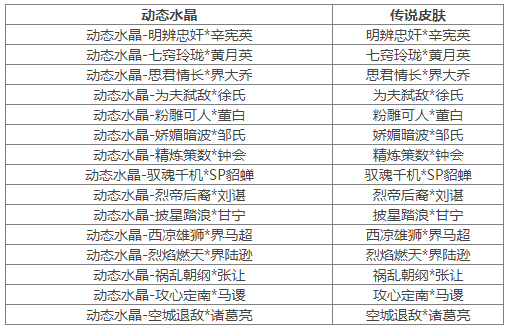 活动期间,每消耗水晶碎片*5可兑换动态水晶*1,动态水晶*1可兑换传说动态水晶;每消耗朱砂*600,可兑换传说皮肤。