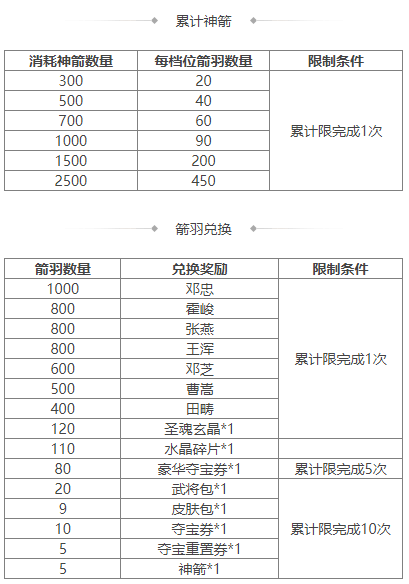 5、神箭和箭羽为时限道具,本次获得过期时间为2024-8-10 00:00:00,请玩家按需购买神箭。