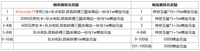 *注:精英赛实物奖励将在公示核算后,60个工作日发放,届时将有工作人员联系玩家领取(华为mate70发放时间以实际采购到货为准);海选赛游戏道具奖励比赛结束后自行领取。