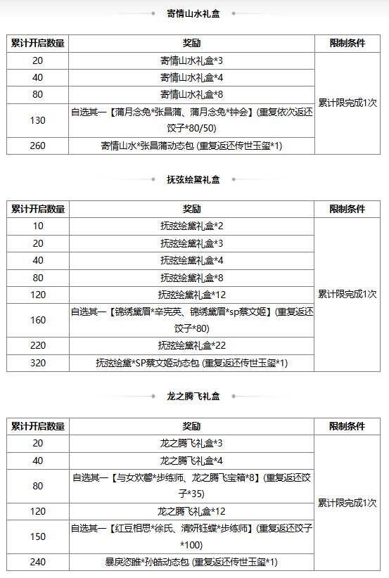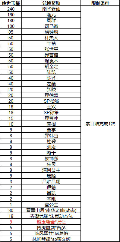 *开启自选武将宝箱可自选以下奖励其一:段颎、梁兴、田畴、传世玉玺*1;