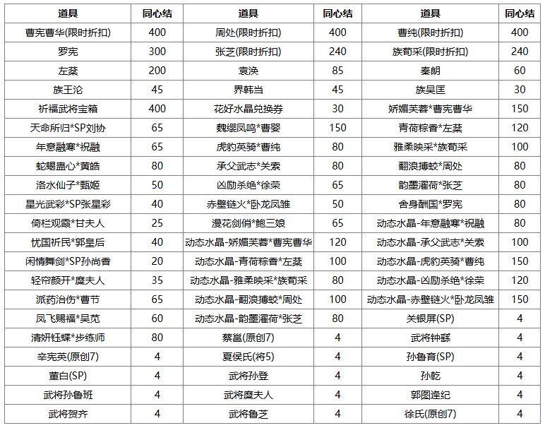 1、同心结可兑换奖励,若兑换奖励是在此次活动前已拥有的永久武将、皮肤、三国秀,则无法重复兑换。