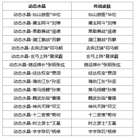 活动期间,每消耗水晶碎片*5可兑换动态水晶*1,动态水晶*1可兑换传说动态水晶;每消耗朱砂*600,可兑换传说皮肤。