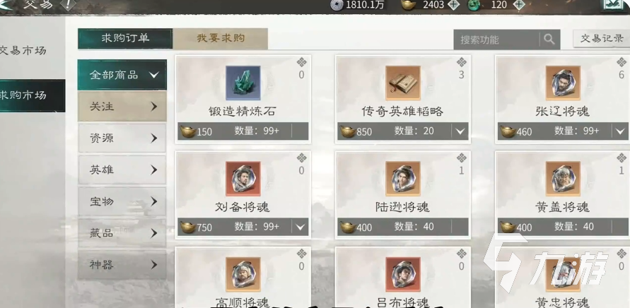 交易行能补齐短板,在培养武将时,经常可能差1两个突破石,或者某些进阶材料,在有交易行后,可以直接去购买其他玩家挂出来的东西,能立刻完成目标,而且交易行平时也会刷新,有些低价物品,可生下来一些资源;