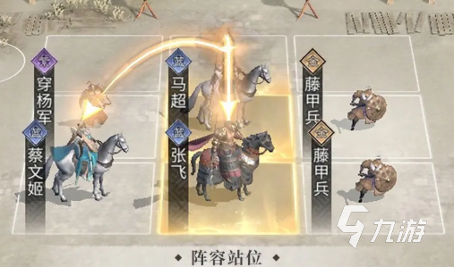 蔡文姬能提供治疗和强力的追击增益“余音”,从而进一步让整个队伍更加完善,站位方面注意一定要让马超,踩到张飞以及蔡文姬的追击格,这样才能形成以其为主c的阵型,盾兵安排在前排来抵抗伤害,弓兵等输出类的兵种就放置在后排。