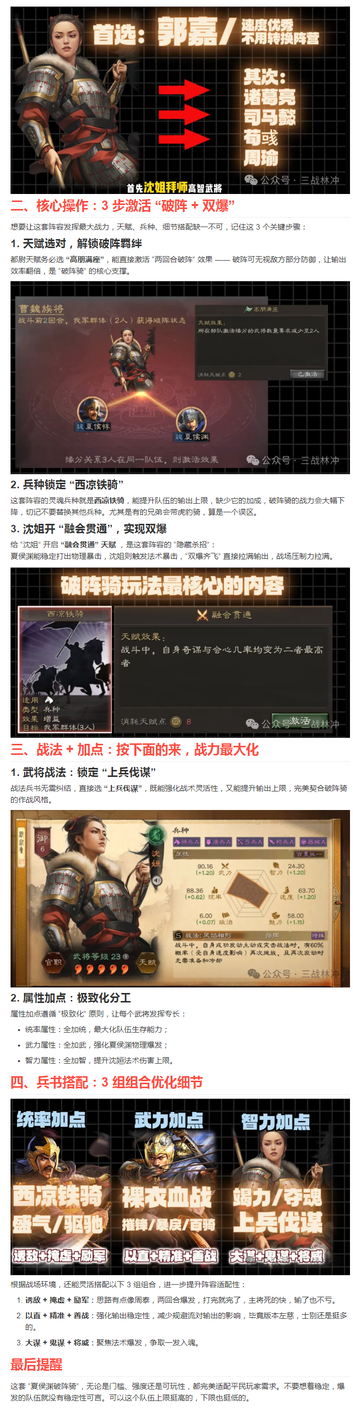 【攻略分享】夏侯惇、夏侯渊、沈姮破阵骑战法搭配、兵书加点建议,双爆齐飞