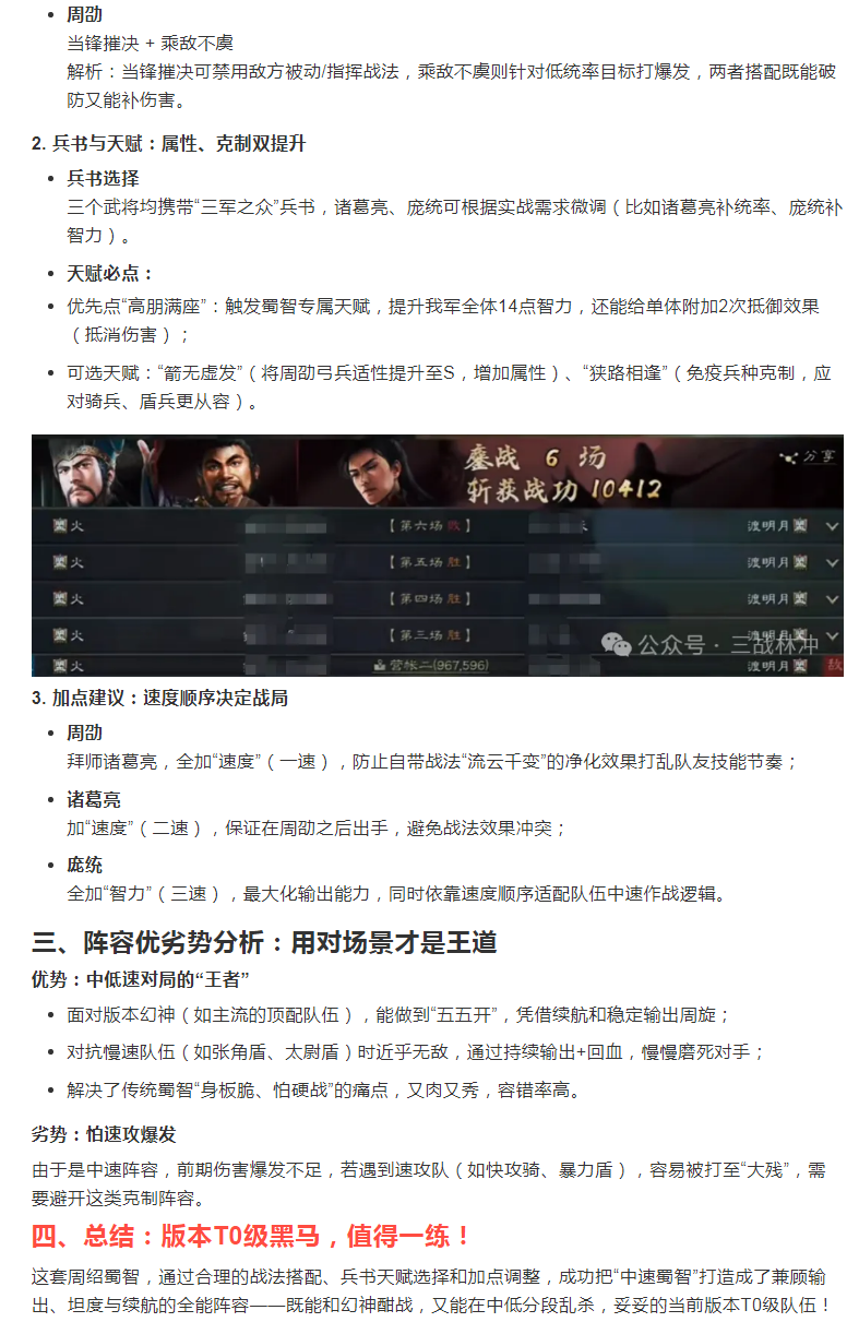手机游戏> 三国志战略版> 游戏新闻> 【攻略分享】【周劭蜀智】再度封神!中速蜀智逆袭成版本黑马,阵容细节全解析