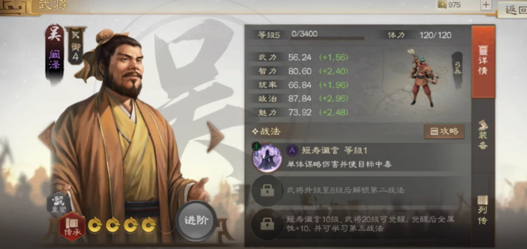 丰富武将将设计是三国志战棋版中最能吸引大家的地方,每一名出场武将都参考了历史中资料进行真实还原,从属性、技能到兵种方面非常符合实际情况,今天小编带来的是三国志战...[详情]