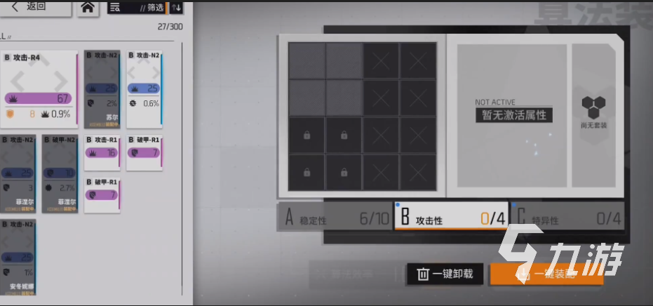 除了基础的思路之外,在搭配的时候还要注意三个区域的搭配。每个角色都是ABC三个区域的,A是稳定性算法搭配,B是攻击性算法搭配,C是特异性的算法搭配。这三个区域位置都是独立的,在搭配的时候下面可以看到一个数量的显示。一定不要超过这个数量的上限,否则就无法获得额外的提升。