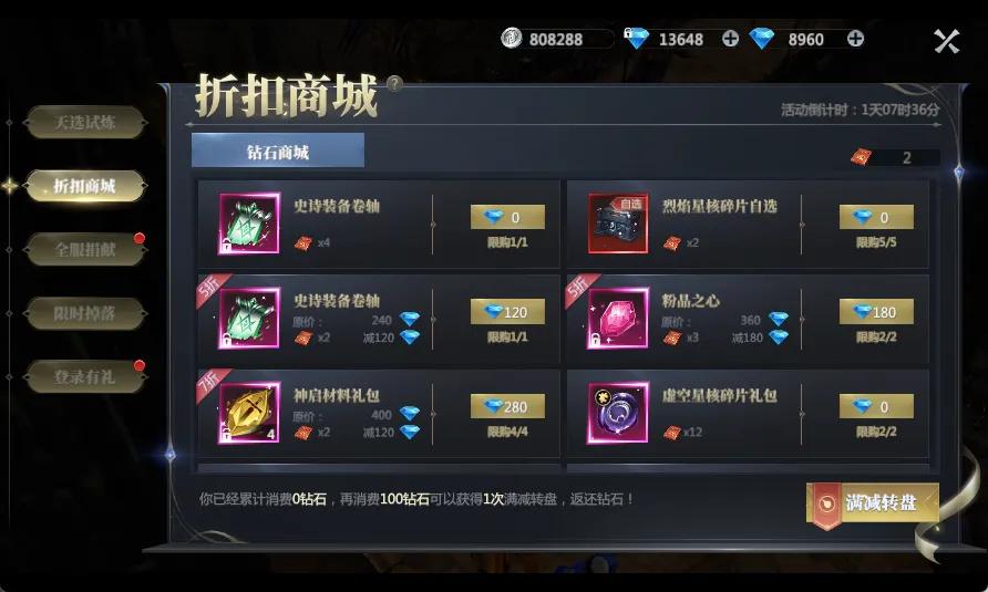 我每周都会购买折扣商城的史诗装备卷轴!一份免费,一份120钻石刚好完成任务。
