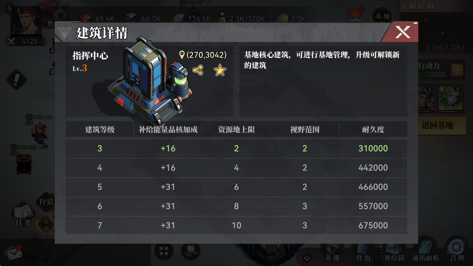 2.积极提升指挥中心 以解锁新建筑,并可提升补给加成、资源地上限、视野范围。