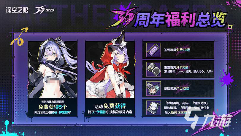 此次官方前瞻直播还一并公布三个兑换码:【3.5周年福利庆典】、【吾乃冥王】、【大饱眼福】,使用后可以拿到总共900移转之辉。而在新版本更新之后,大家可以进行签到,在指定日期内完成签到可以拿到限定s级别的修正者隐夜伊里伽儿,可以拿到5个,也就是说可以拿到一个满命的伊里伽儿。