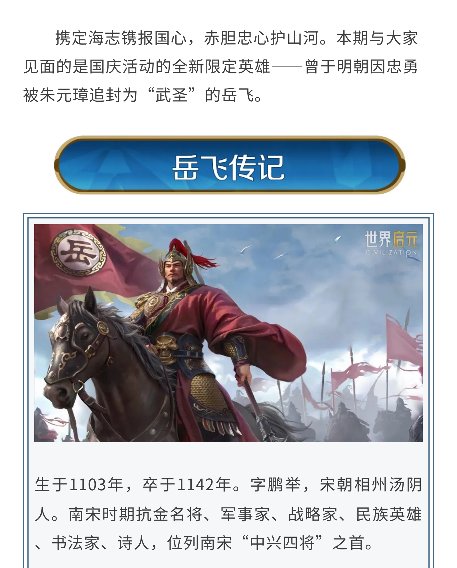 新纪元情报丨新限定英雄:「岳飞」详情公布!