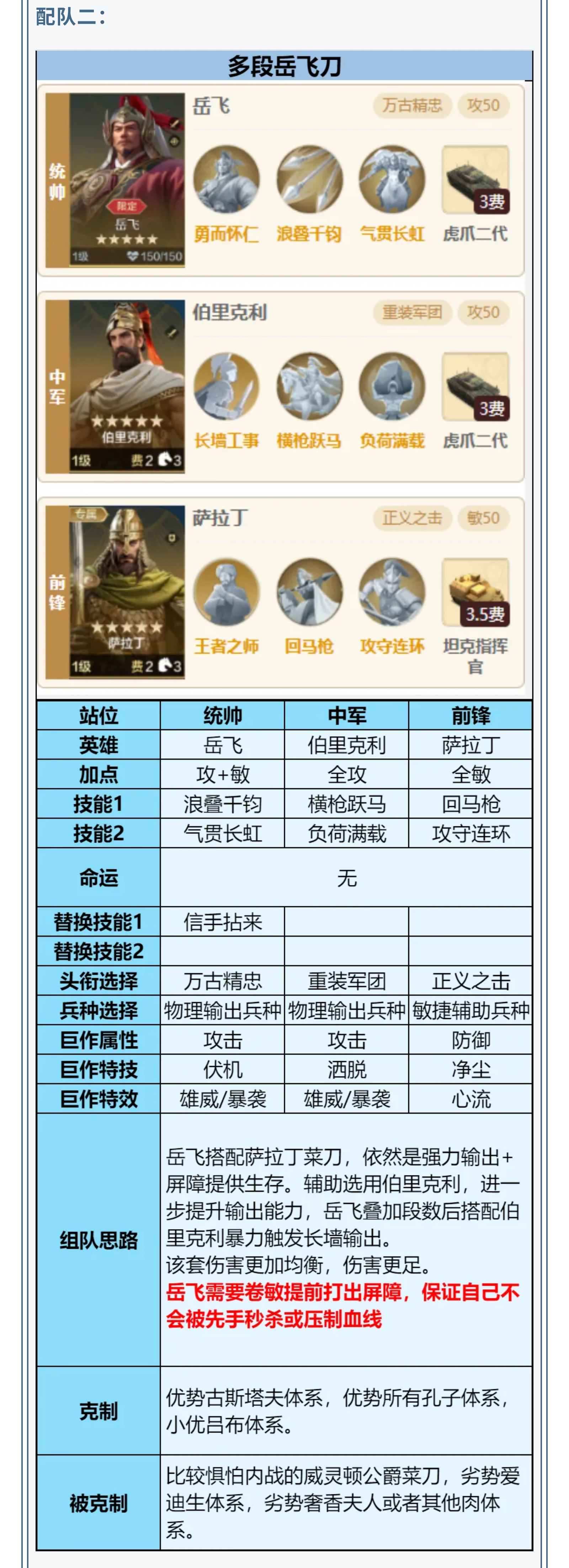攻略分享丨新限定英雄-岳飞配队攻略分享