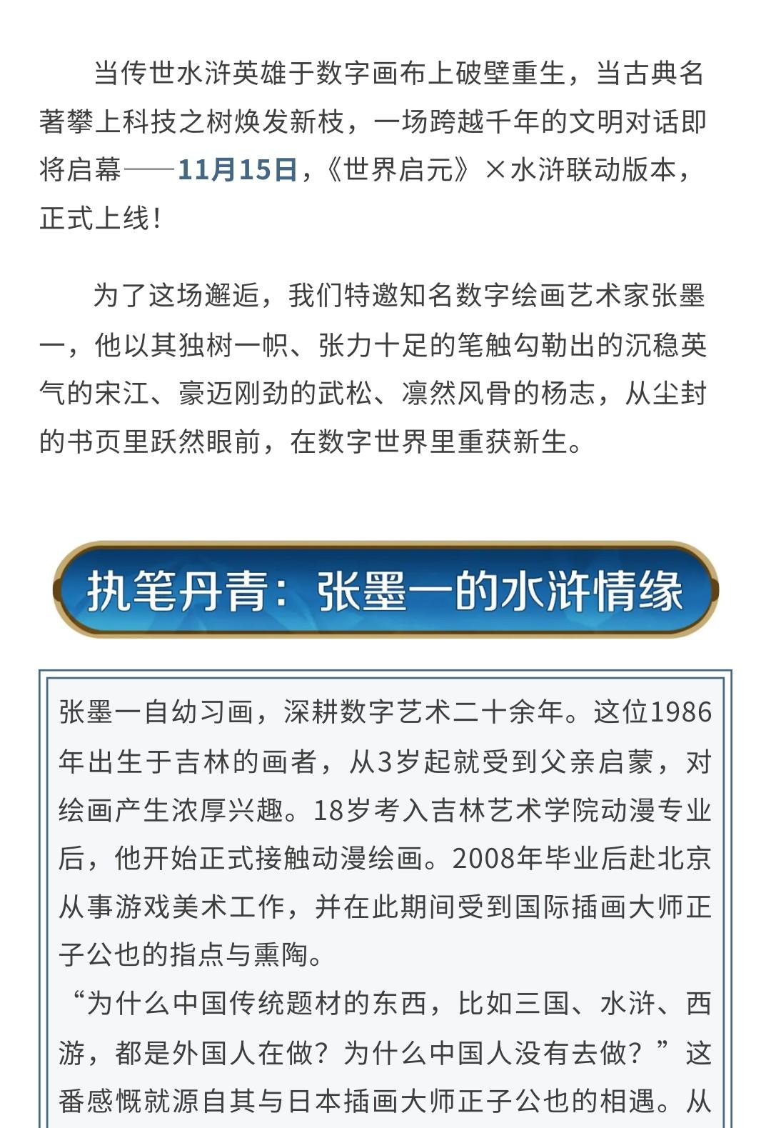 手机游戏> 世界启元手游> 游戏新闻> 数字丹青绘经典张墨一水浒豪杰破壁降临