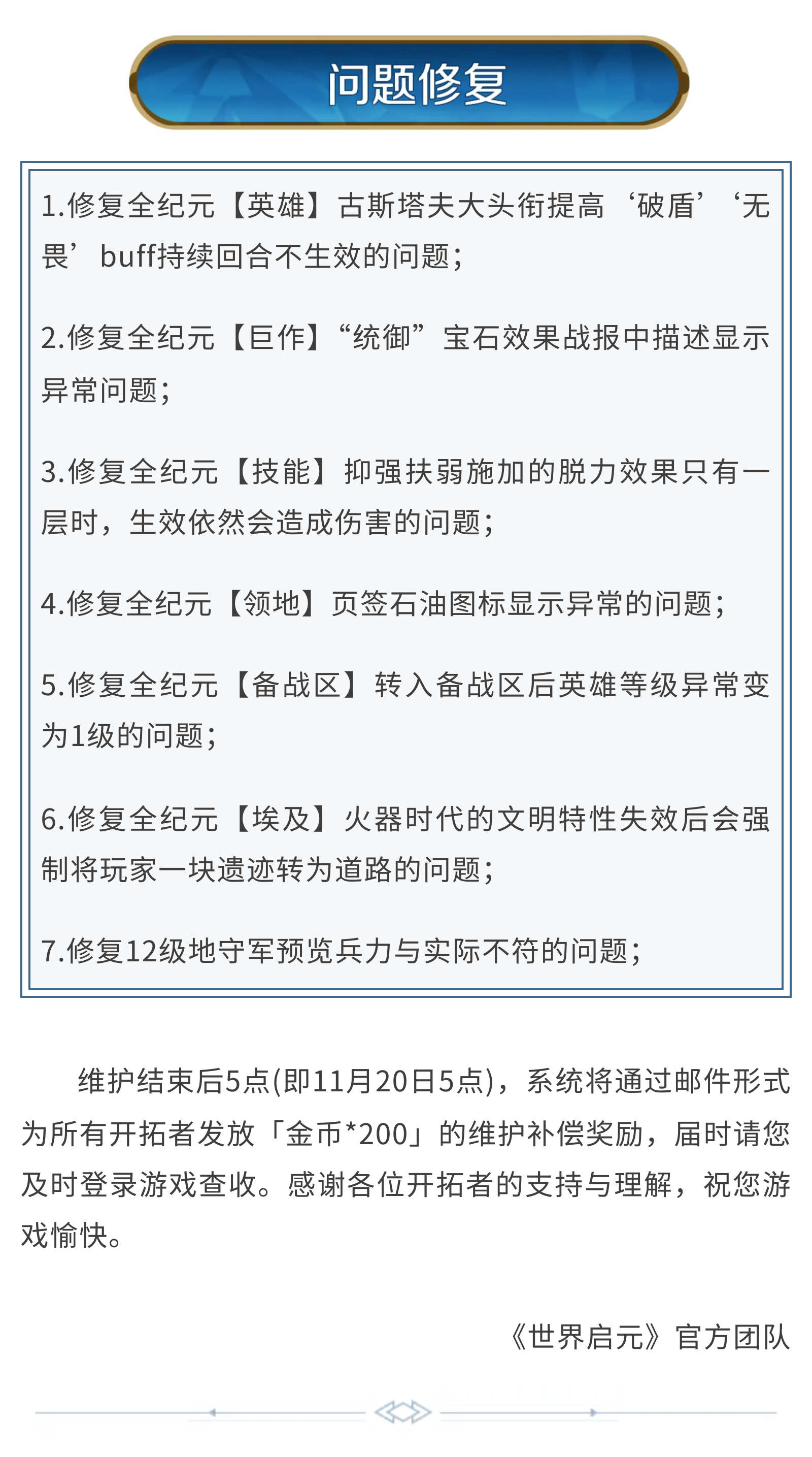 手机游戏> 世界启元手游> 游戏新闻> 《世界启元》11月20日更新公告
