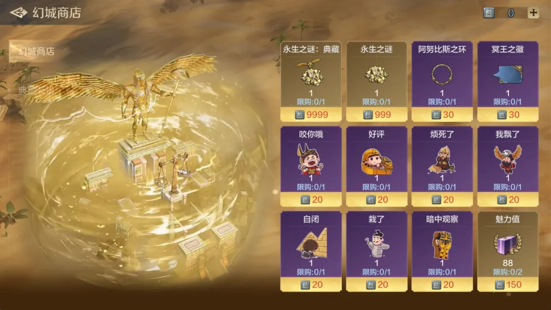 幻城基石可以用来兑换「永生之谜」普通装扮、典藏装扮以及各种道具。