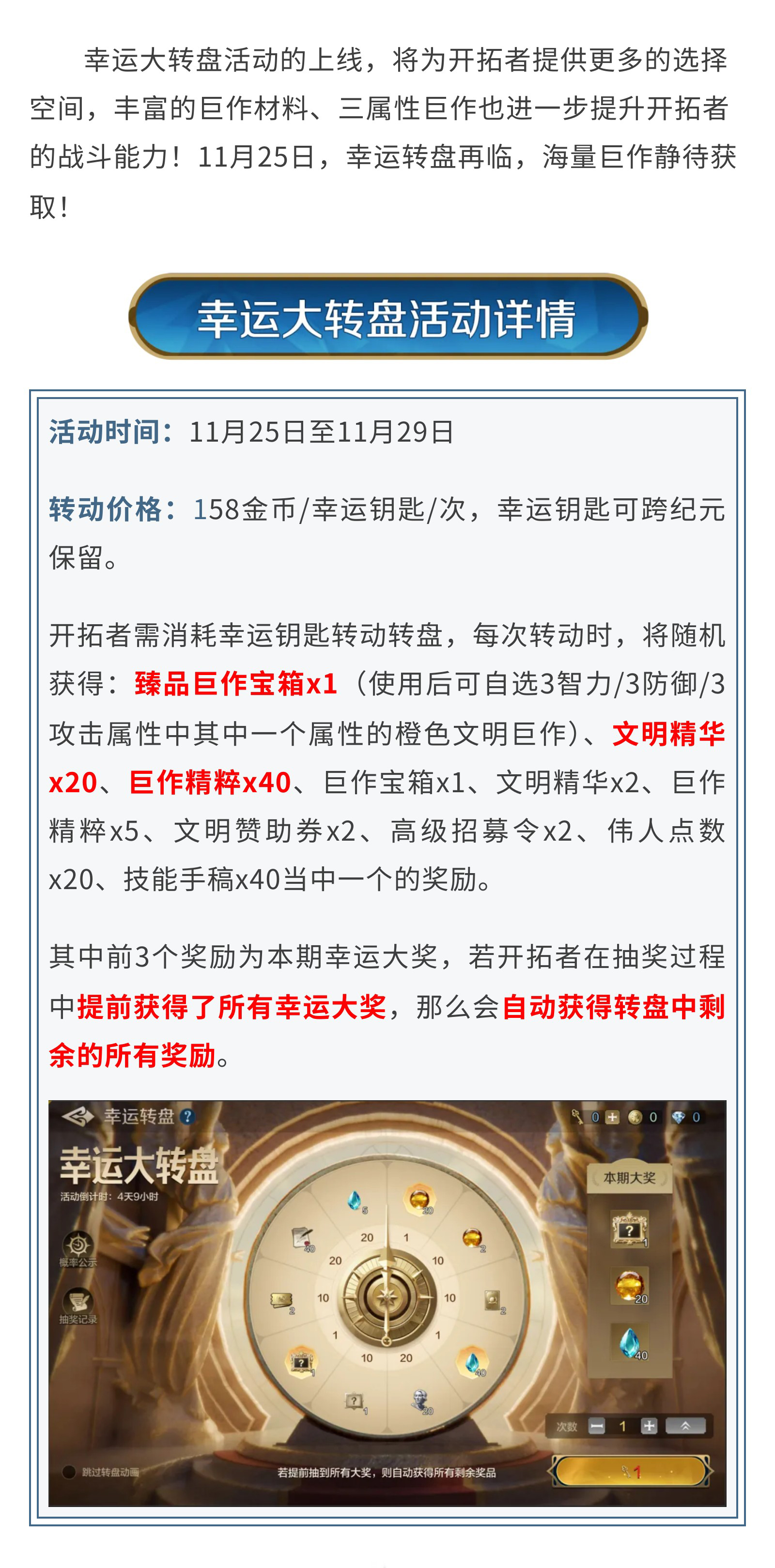 新活动资讯丨幸运转盘限时重启海量巨作材料抱回家