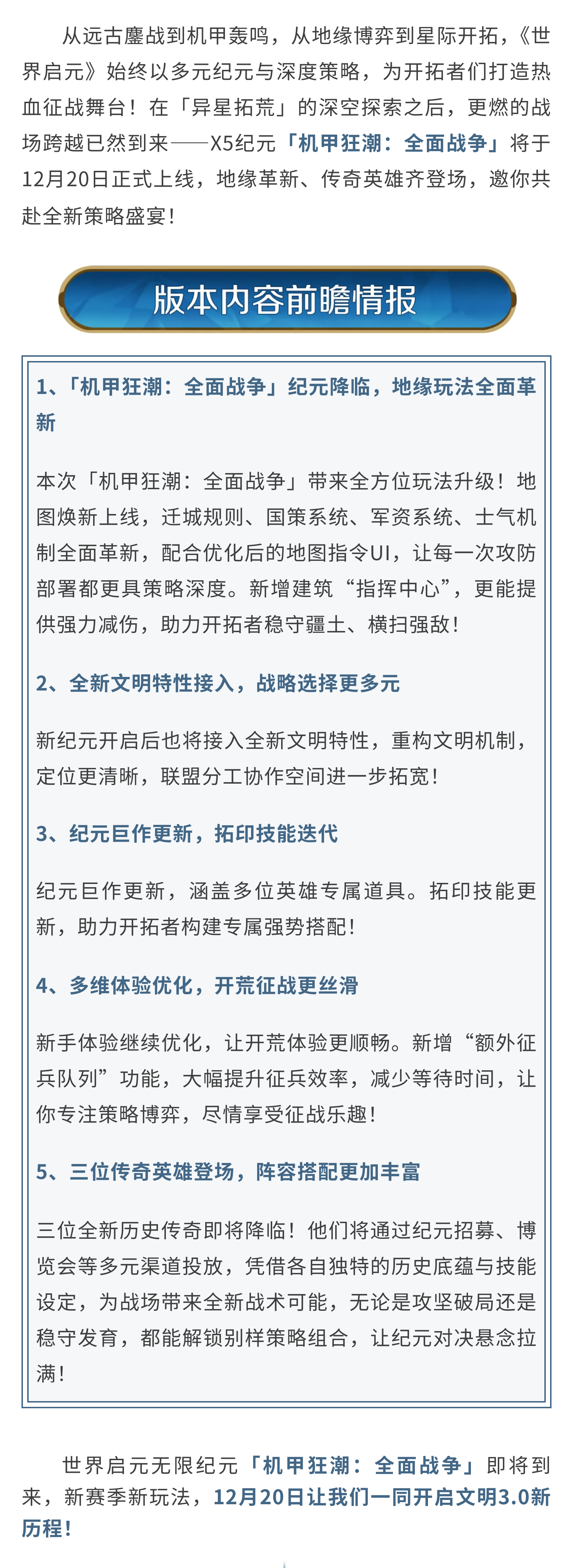 新版本内容前瞻丨机甲狂潮:全面战争即将来袭!