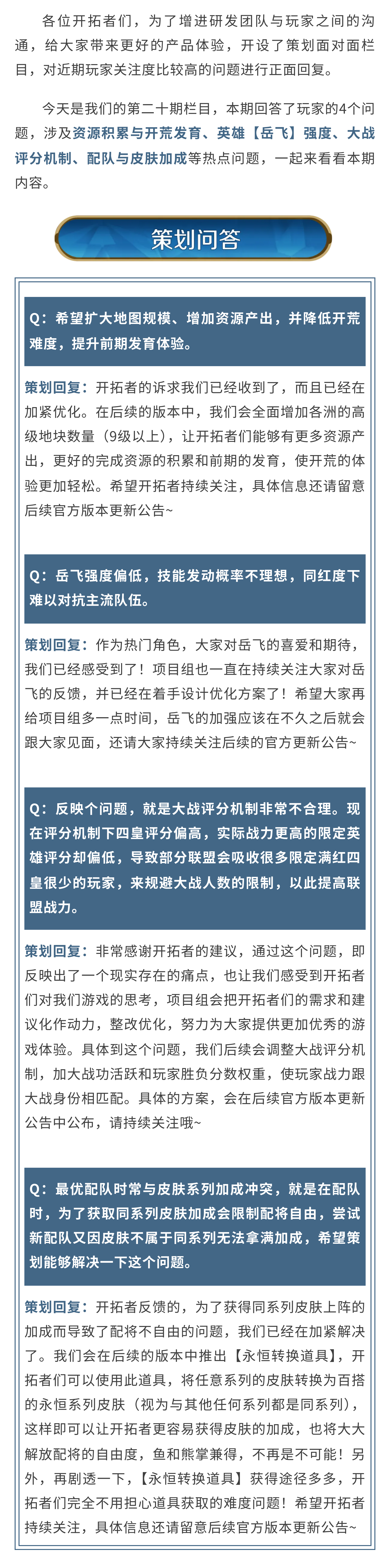 策划面对面丨大战评分机制调整资源开荒体验优化