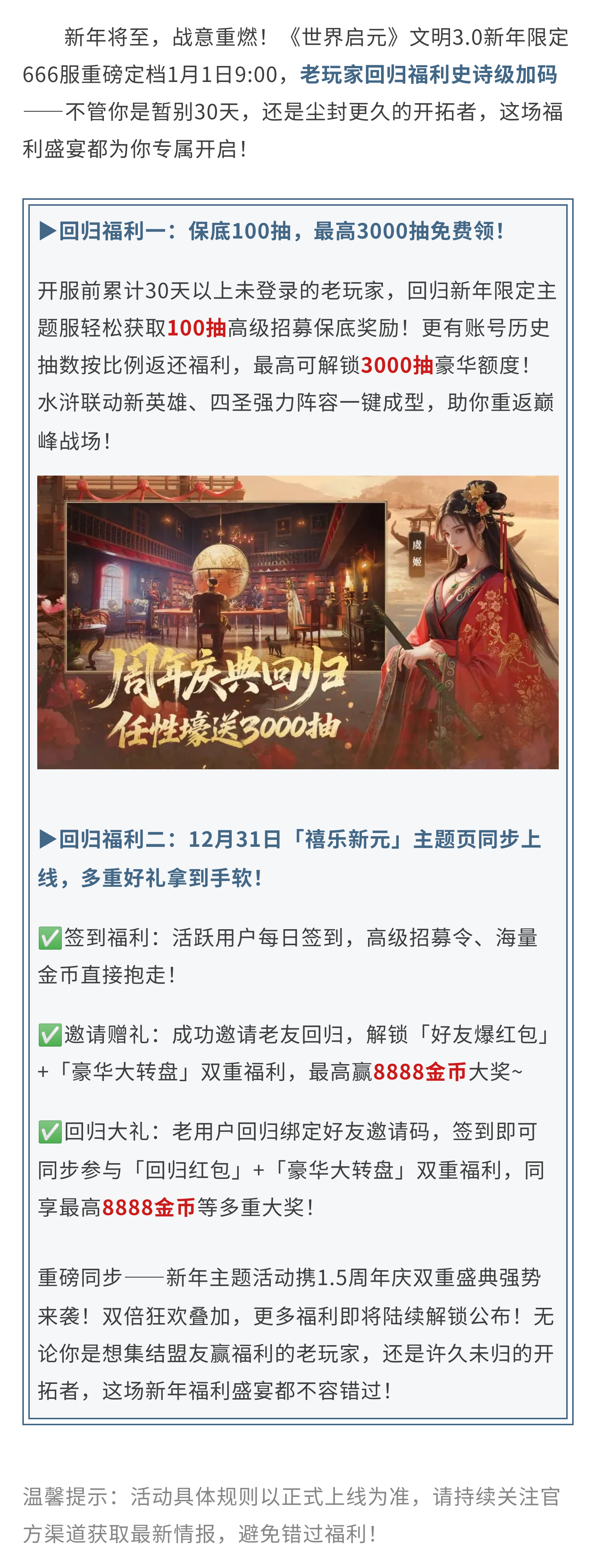 手机游戏> 世界启元手游> 游戏新闻> 诚邀老玩家回归!1.5周年双庆狂欢即将开启!