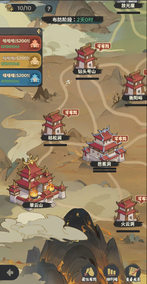 2、掌门、长老可在布防期间将门派成员的队伍布防到己方阵营的城池