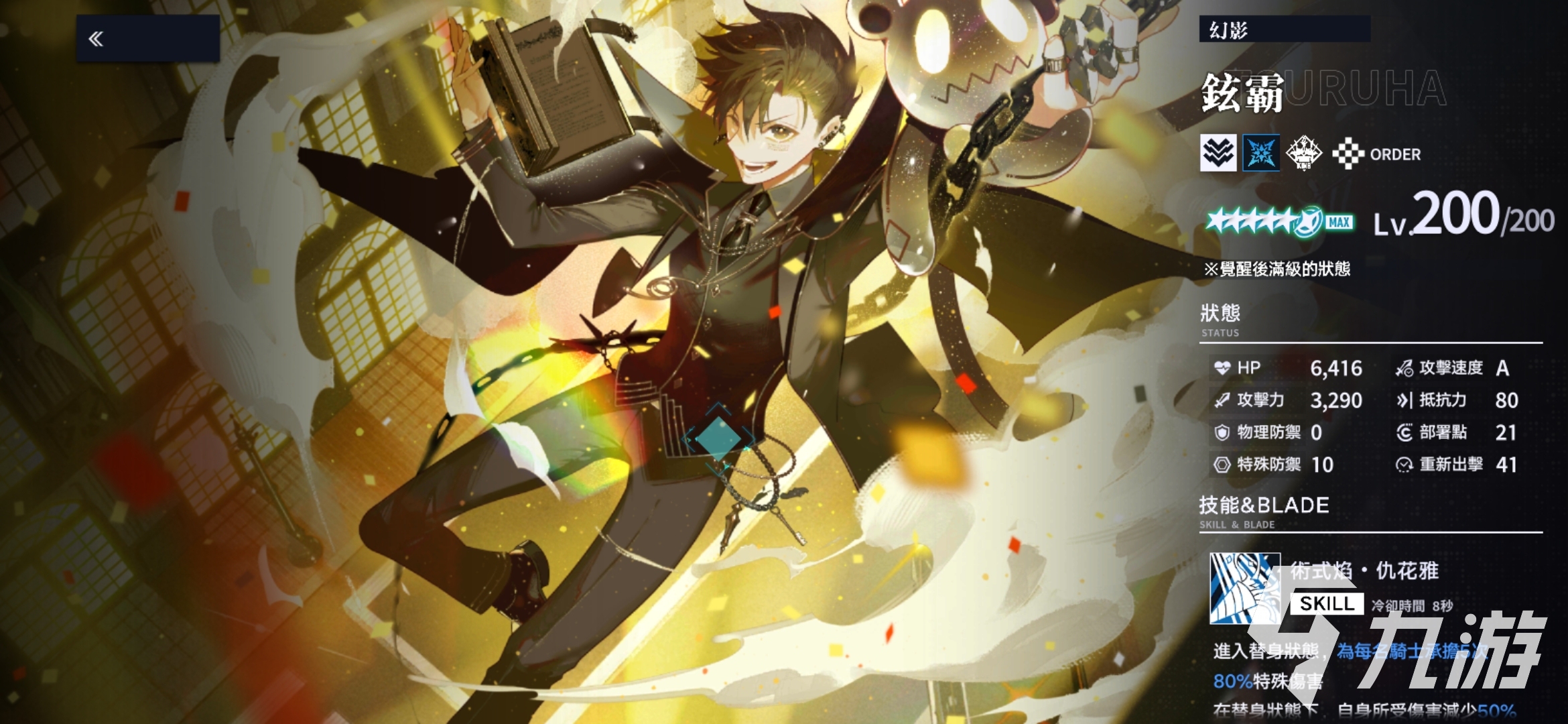 铉霸(幻影)的定位是替身防御型前锋。他的技能能进入替身状态,为全队分担多段伤害,同时大幅减少自身承伤。BLADE技能能将敌人拉拢到一起,并造成范围打击,兼具聚怪与反制效果。铉霸的优势在于防御与控制并存,既能保护队友,也能稳固战局,是前锋位上极为可靠的支柱。