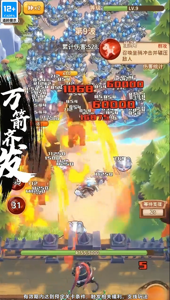 【武器搭配,攻守策略】面对如潮水般不断涌来的敌军,我方要合理搭配武器才能取得胜利飞斧、石头、雷术等武器都是你制胜的法宝,若使用得当,可抵百万大军。